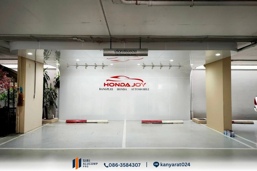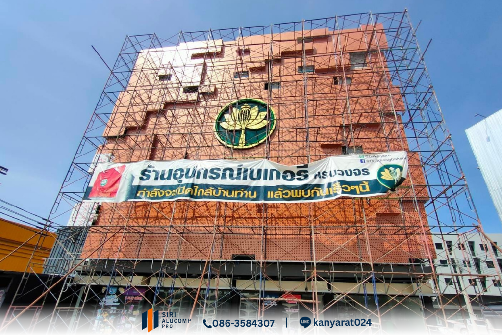 งานฟาซาดควรเลือกแผ่นที่มีความหนาและความแข็งแรงสูงกว่างานทั่วไป แนะนำความหนา 4 มม. และเลือกผิวเคลือบ PVDF สำหรับภายนอก เพื่อให้ทนแดด ทนฝน และลดปัญหาสีซีดในระยะยาว โครงสร้างควรเป็นเหล็กหรืออลูมิเนียมที่ได้ระดับ เพื่อป้องกันแผ่นโก่งหรือบิดงอในอนาคต